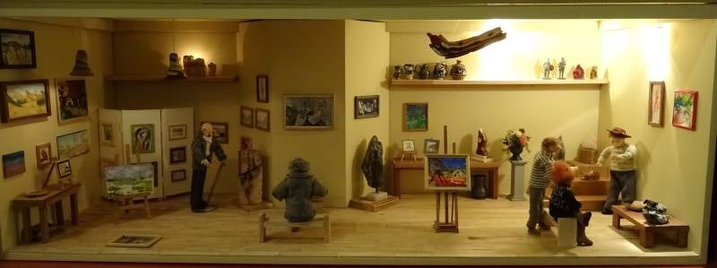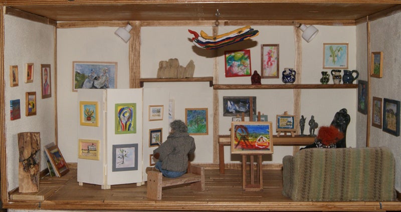Chris heeft z'n radio in een laatje gemaakt zodat de galerie in een vak van de kast gemaakt kon worden. Ook werd hij groter, dus meer beelden maken en alles opnieuw inrichten. Diverse familie leden en vrienden maakten weer schilderijen voor me.