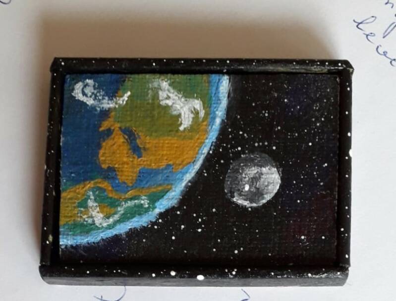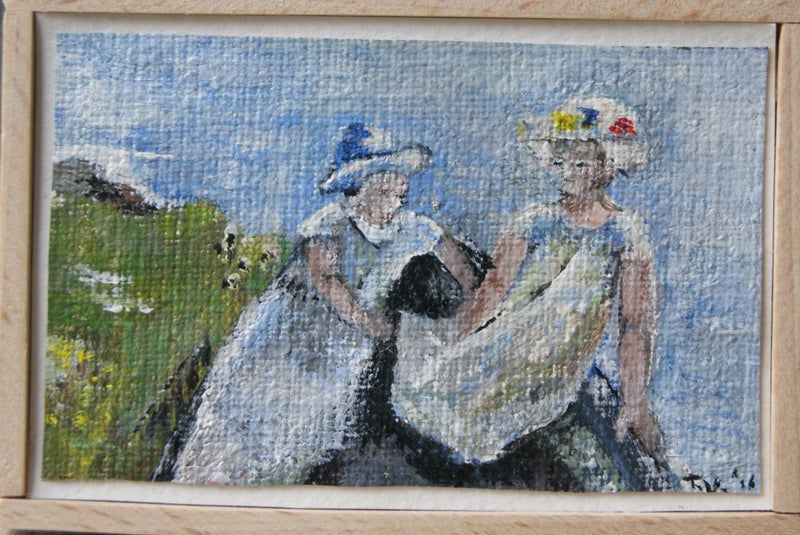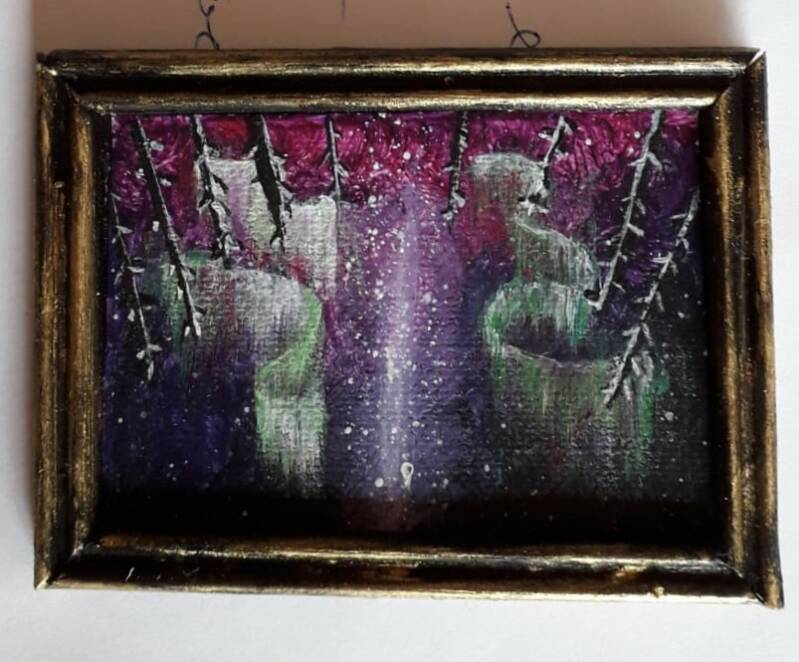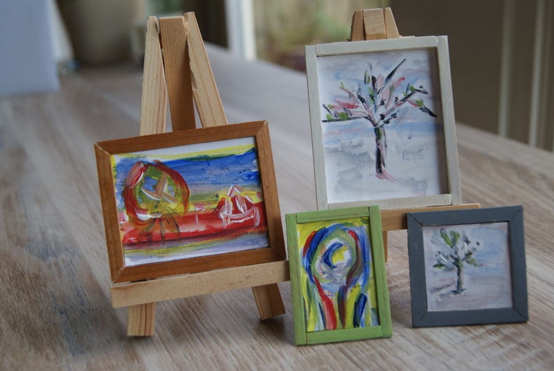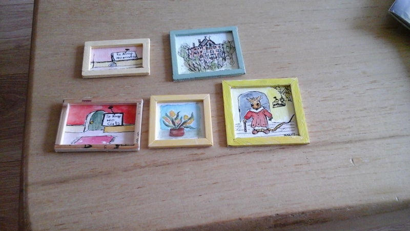 Schilderijen van Jaap v.d. Velde, een neef van Chris. Hij schilderde zijn eigen schilderijen in het klein, heel bijzonder.