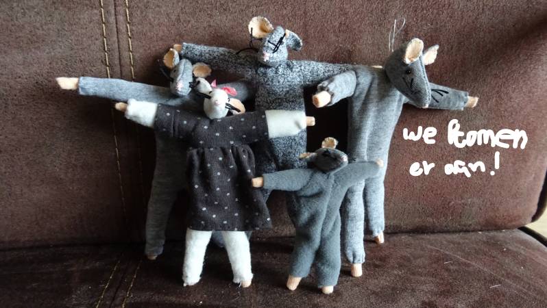 De muizen in wording, leuk werk maar wel zwaar voor de handen. Gelukkig hoeven ze niet in een dag klaar te zijn.