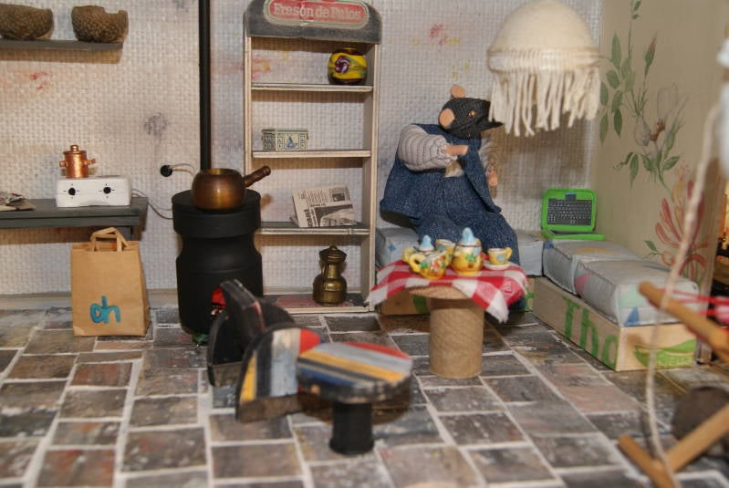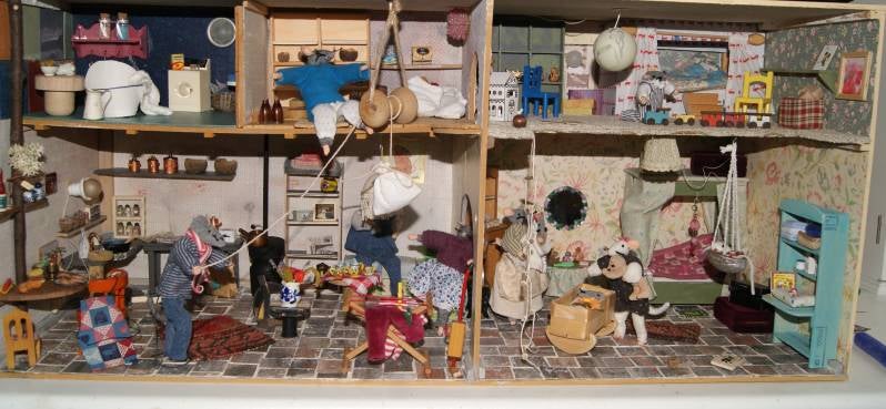 De muizen zijn klaar en het meeste meubilair ook. Het licht is in orde en nu kan het huisje bijna naar de bestemming.