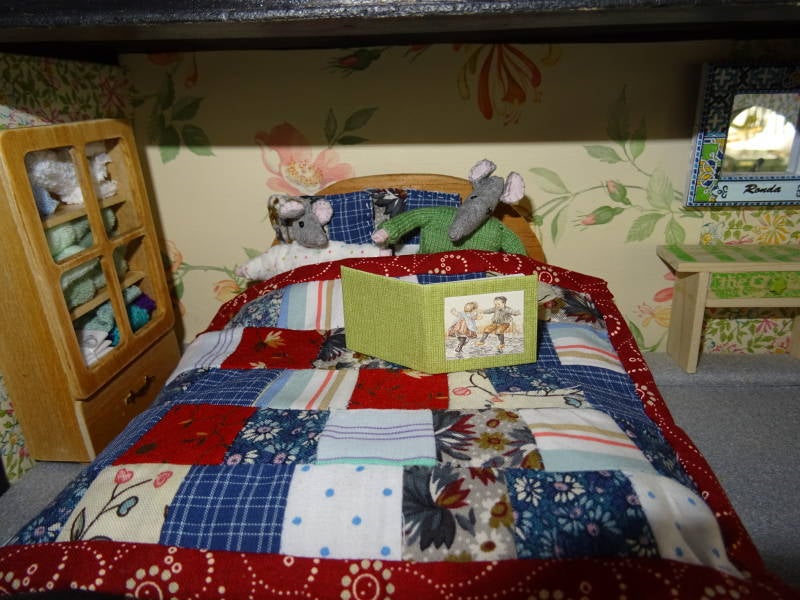 Het idee voor de postkamer zag ik in een poppenhuis blad en ook het bed waar nog een oma'tje bij hoort.